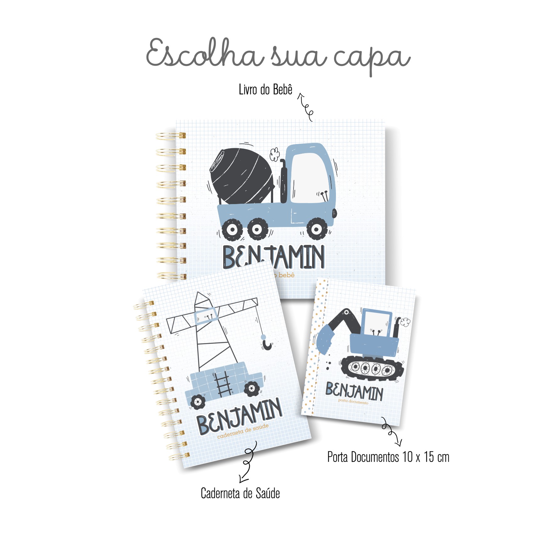 Kit Bebê Menino ( Livro + Caderneta + Porta documentos)