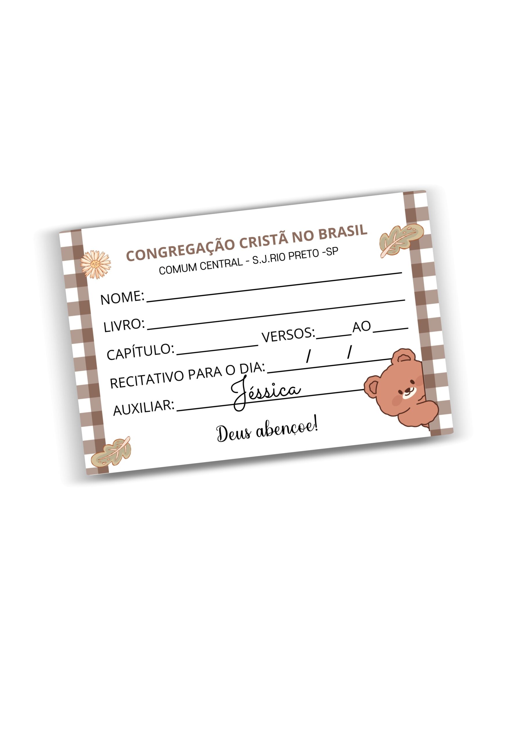 Personalização: Nome do auxiliar e comum (opcional).
