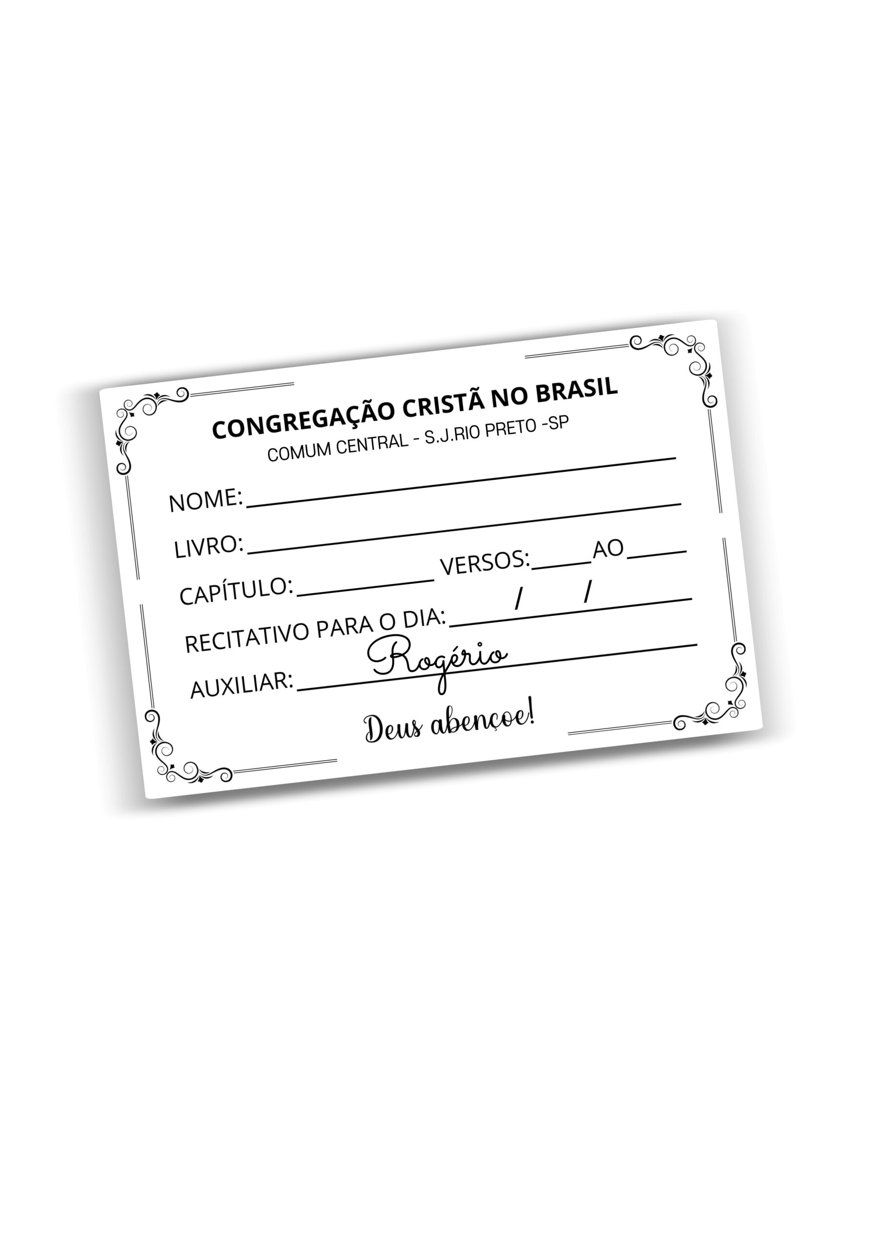 Personalização: Nome do auxiliar e comum (opcional).