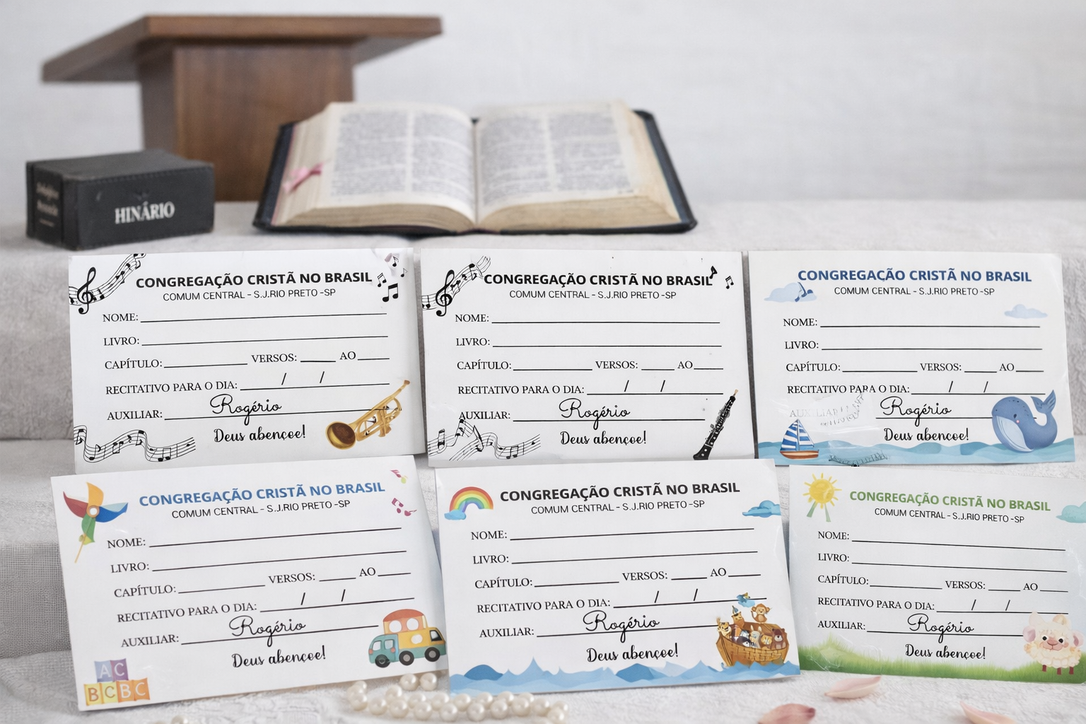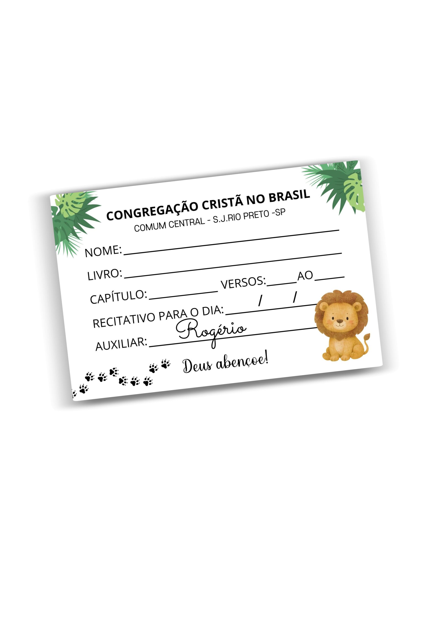Personalização: Nome do auxiliar e comum (opcional).
